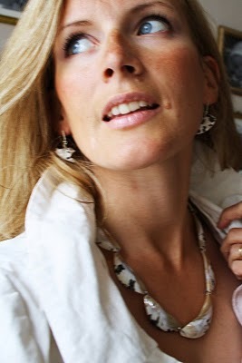 Koruja oli pakko kuvailla tarkemmin; nämä Asgeir toi viimeiseltä Kuuban reissultaan ja ovat käsintehty simpukan kuorista! Tuovat vähän villiyttä klassisen neutraalin asuun 🙂 Rannekorua ei sitten onnistuttu saamaan mukaan… mutta se näkyy ylemmässä kuvassa.