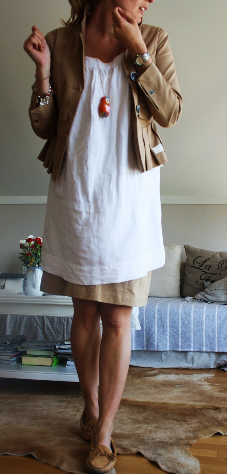 Ihana asu! :)Tuollaisen vaalean mekon mäkin haluaisin kesäksi.. Ja vitsi mikä löytö takki on! :)Aurinkoisia kelejä sinne!