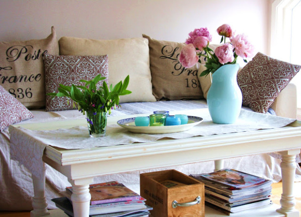 Ensin muutama kuva meidän värikkäästä olohuonepäivityksestä. Det er sommer nå!