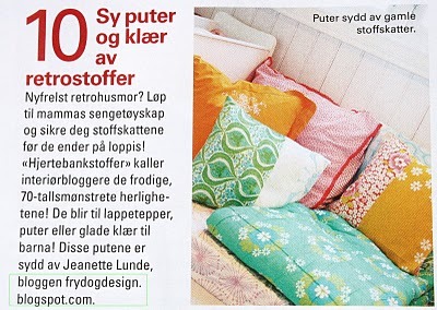 Ihan ilmaista huvia on sitten taas kaivella vanhemmilta -tai isovanhemmilta vanhoja lakanoita ja vuodevaatteita ja ommella niistä vaikkapa tyynyjä. Tai tilkkutäkkejä. Tai iloisia lastenvaatteita. Kuvan tyynyt löytyi lehtijuttuun norjalaisesta blogista osoitteesta frydogdesign.blogspot.com.