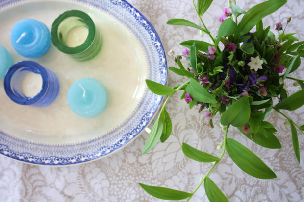 Meillä perhen pojat ovat innokkaita luonnonkukkien kerääjiä. Ollin kimput ovat toistaiseksi rajoittuneet voikukkiin, mutta pappan kanssa tulee muutakin. Ruokapöydälle asti riitti kimppu kieloja.