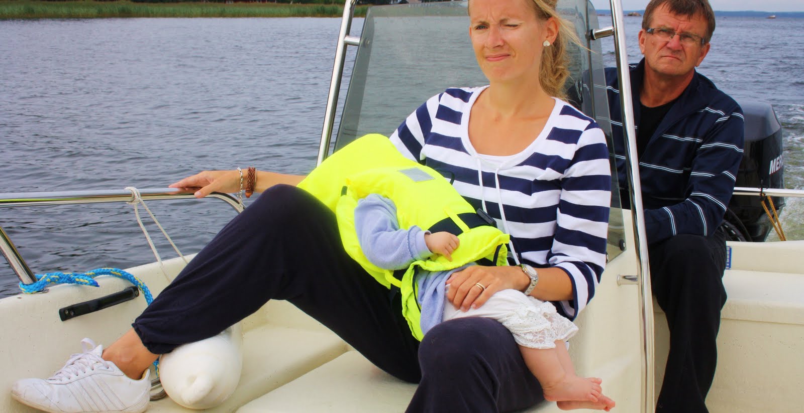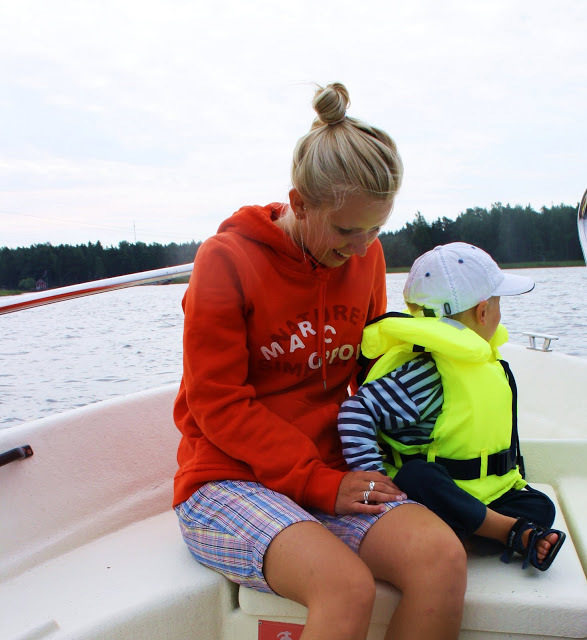 Ja kyllä mulla oikeesti oli ne liivit eilen. Tää on tosi huonoa mainosta. Matka on kuitenkin mökiltä venelaituriin tosi pikkuinen, jos jotenkin voin puolustautua. Et ei me aina jakseta.