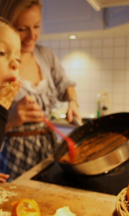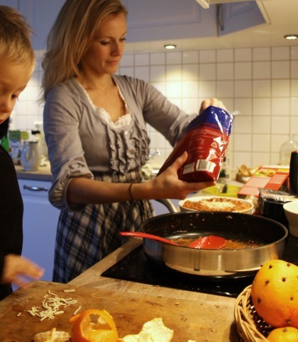 Me ollaan tänään tehty lasagnea. Justiinsa. Se on nyt uunissa. Isompaa apukokkia kiinosti eniten kaikenlainen syöminen -etenkin juustoraasteen: