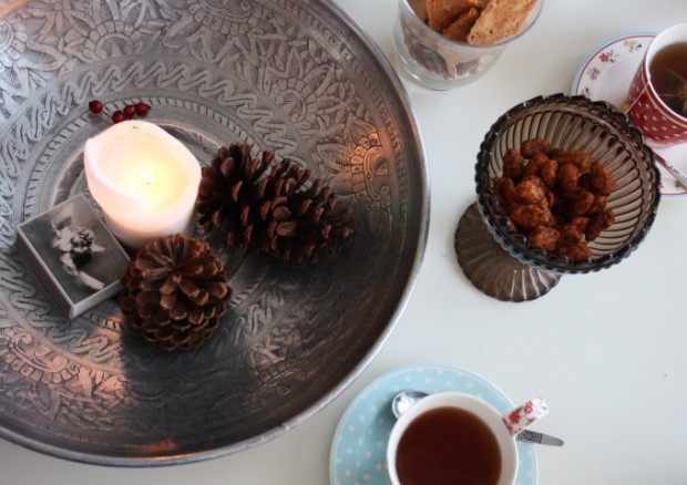 Päivällä sain yllärikahvi(tee)seuraa, olipas niin kivaa kattaa sohvapöytä extempore että otin ihan kuvia: