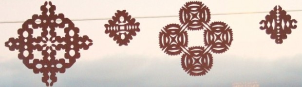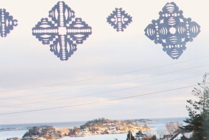 …sanoi mies, mutta kyllä sekin sit loppujen lopuksi myönsi, ettei niistä niin kauheat tullut mitä se lapsuusmuistojen perusteella kuvitteli. Ja ulkoa lumihiutalekoristelut näyttivät jopa varsin kivoilta! Melkein kuin pitsiverho. I like! Ilmaista, kivaa ja itsetehtyä -koristelua mun makuun parhaimmillaan.