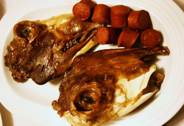 Tarjolla oli myös toinen osa lampaasta, jota puolestaan ehtikin hyvin kuvailla… voin sanoa, ettei meidän tyttöjen suihin kyllä uponnut sitten laisinkaan, mutta on etenkin Norjan länsirannikon perinteisimpiä ”herkkuja”: