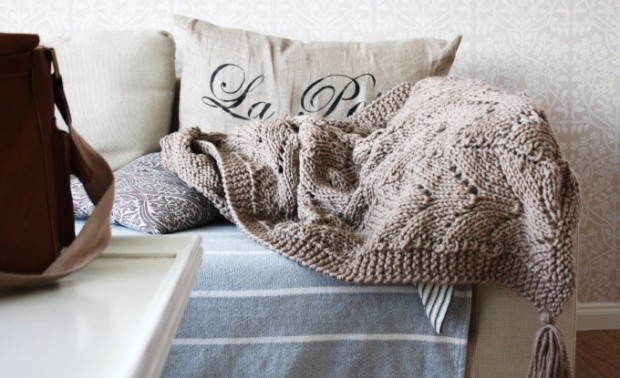 Heippispeippis ja pikainen peittoposti! 🙂 Tämä on siis äitin tekemä, äitiltä joululahjaksi saatu aikas ihana villapeitto, josta teki mieli ihan kirjoittaa, koska se on vaan niin kiva! Ja sopii meille kuin nyrkki silmään.