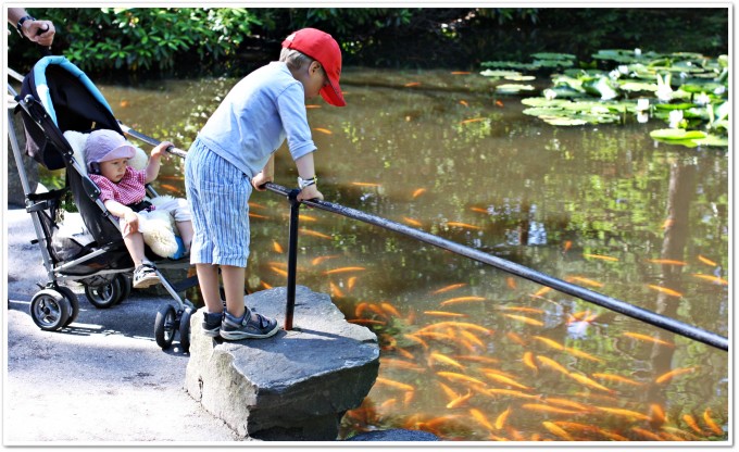Kristiansandin eläinpuisto ei myöskään ole tavallinen eläintarha, vaan täällä voi vierailla vaikkapa pelottavassa peikkometsässä tai oikeassa merirosvokaupungissa ja ajella suurilla merirosvoaluksilla. Tai viettää aurinkoinen päivä loistavassa vesipuistosa. Puiston alue on täynnä erilaisia huvipuistolaitteita; yllä me ollaan Ompun kanssa ”tukkijoessa” -sekä leikkialueita kiipeilytelineineen ja hiekkalaatikkoineen. Kaikki laitteet sisältyvät sisäänpääsymaksuun eikä lippujen kanssa tarvi sen kummemmin pelailla -senkun vaeltelee huolettomasti. Kotieläinpuistossa voi kävellä possujen ja vuohien seassa ja leijonia ja tiikereitä ihastella aidan takaa. Apinoilla ja eksoottisilla matelijoilla on tietysti omat talonsa.