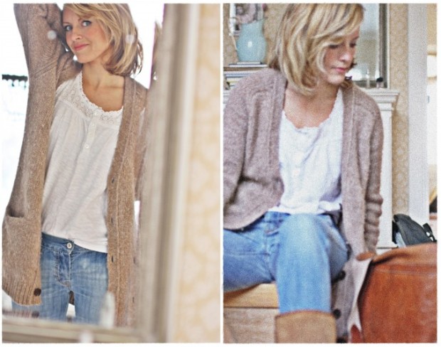 Kaipailin tänään vähän pitsiä, joten yhdistin valkosen kesätopin Emuihin, farkkuihin ja paksuun villatakkiin.