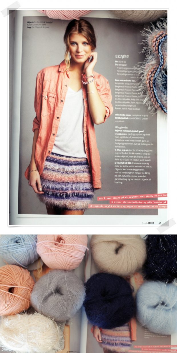 Poimin tällaisen makean minihameen tuoreen norjalaisen KK -lehden (joka on muuten vähän Me Naisten tapainen tosi suosittu naisten viikkolehti) idea -liitteestä. Kerronpa tähän teillekin ohjeen, jos joku muukin innostui 🙂 Nyt kannattaa käyttää jämälankoja ja ostaa tarvittavat loput lisäksi -supertrendikäs minihame on pian valmis!