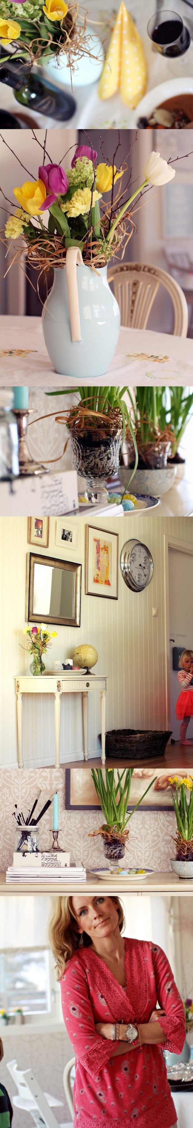 Tein muuten kolme keväistä pääsiäkimppua tulppaaneista, neilikoista ja muutamasta pitkästä pääsiäisliljasta. Lenkillä kerättiin koivunoksia ja kuivaksi kihartunutta heinää sekaan ja nyt vain odotellaan että oksiin puhkeaa lehdet 🙂 Sai kivasti ripoteltua kimppuja ympäri kotia sen sijaan että yhdellä pöydällä olisi ollut tulppaaneja ja yhdellä neilikoita..