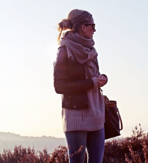 Kaunis yhdistelmä tuo villapaita ja nahkatakki. Ja käytännöllinen, täällä Etelä-Suomessa ainakin tuulee nyt niin paljon, että olin jäätyä ohuessa paidassa ja nahkatakissa, musta sekin 🙂