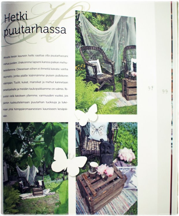 9. Olen aina rakastanut ”vanhaa” tyyliä, mut tuntuu et ideat loppuu kesken ja kaipaisin jotain mitä voisi mahdollisesti halvallakin itse kehitellä. Nyt olen yrittänyt pihalla toteuttaa pieniä visioita, mutta kokonaisuus takkuaa ja ideat loppuu kesken. Nyt lapsetkin (2v ja 4v) antaa jo äitin hetken rauhas selailla lehtiä ja ainakin aina villeille ideoille ja unelmille ois aikaa! Nyt kaipaan potkun persuksille kirjan kautta 🙂
