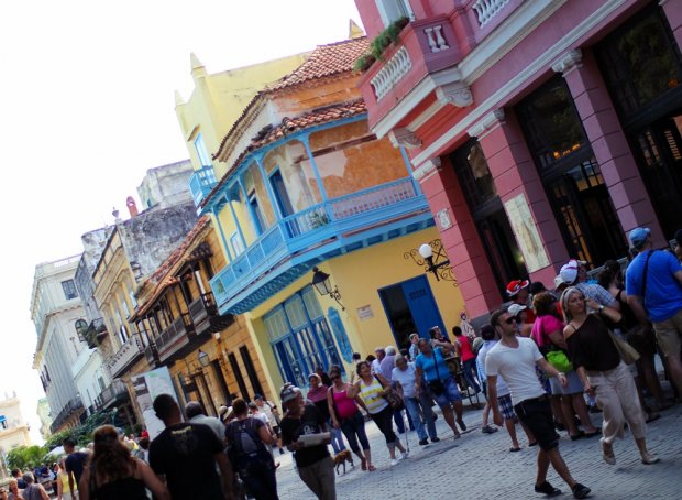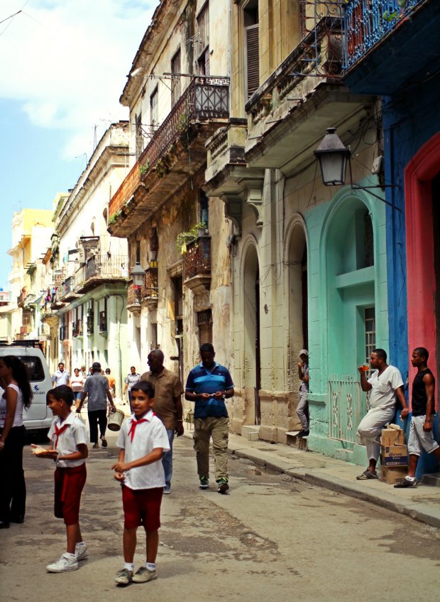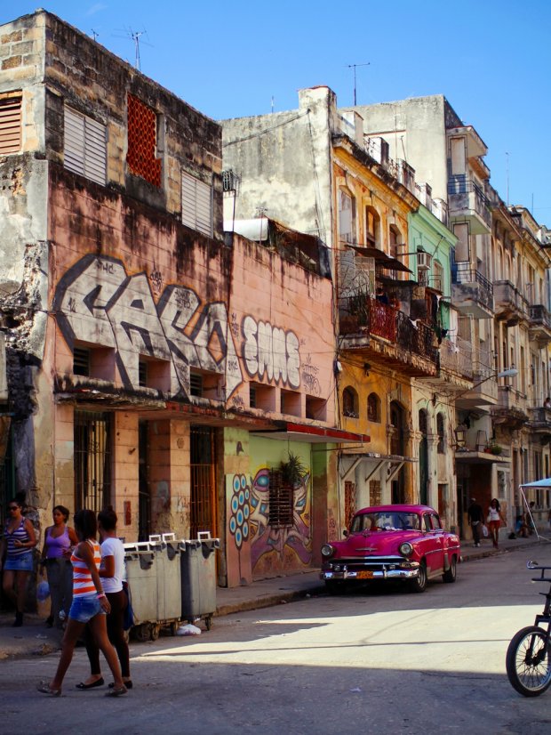 Havannalaismiehillä oli ihanan värikkäitä; pinkkejä, oransseja ja violetteja -ja todella trendikkäitä asuja. Ja siististi leikattuja hiuksia. Tai pitkiä rastoja. Tai nutturoita pään päällä. 🙂 Siellä oli aika monta karkin näköistä kulkijaa. :P’ Unohtakaa köyhyys ja surkeus, sanon vaan. Naisten asukoodi oli iästä ja koosta riippumatta tiukka. Tiukka toppi ja tiukat trikoot; pepun ja masun koosta välittämättä. Kyllä pari kertaa mietin että mitä ihmettä täällä meillä vouhotetaan tosta laihduttamisestakin.. ja hävetään kaikkea mikä ei vastaa mainostejen photoshoppattuja mallikroppia. :/ Härregyyd. Sairasta. Ja ne oli ihan älymakean näköisä. Kaikki ne tiukat trikoot. Kaiken kokoisilla. Tightseissa trendikkäintä taisi muuten olla kuviot; joko kukkatrikoot tai jotkut afrikkalaiskuvio -trikoot. 🙂 Hmm, miksi sellainen pukeutuminen näyttäisi täällä jotenkin härskiltä? Pitäiskö kokeilla kunhan lämpö tulee… 😛