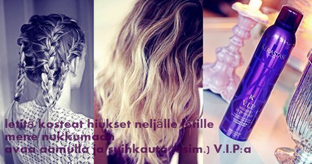 Tuollahan tavalla saakin hiuksiin lisää laineita. Tytäreni aina välillä innostuu lainekampauksista ja pyytää minua laittamaan kalanruodon hänelle yöksi, mutta että tekeekin monta… Pitää seuraavaksi kokeilla. 🙂 Kiitos vinkistä!