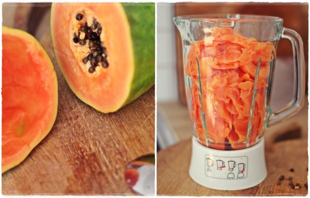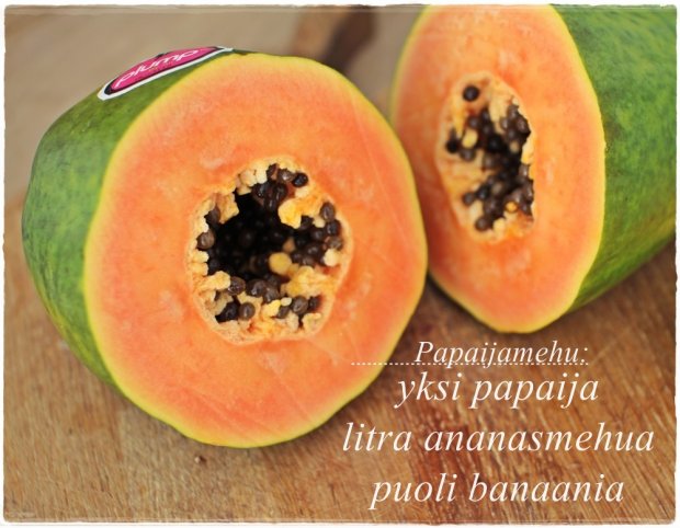 Muutama kuukausi sitten Kuubassa meille tarjoiltiin jokaisella aamiaisella ihanan paksua ja maukasta papaijamehua. Asuinpaikasta huolimatta – tuore papaijamehu oli koko porukan aamiaisen kohokohta. Aivan sairaanhyvää. Jos sekoitat yhden papaijan ja litran ananasmehua, saat vajaan kaksi litraa mehua -hyvä määrä isommallekin kesävierasporukalle vaikka mökille. Toinen tähän mehuun papaijan kaveriksi sopiva herkku on vesimelooni. Banaani ei ole pakollinen, mutta tuo hieman makeutta siitä pitäville.