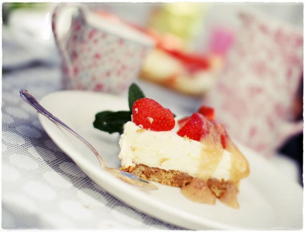 Niinikään saiiraaaann hyvän ja kesäisen raikkaan jäkiruoka tai päiväkahviherkun, juustokakun saa yhdistämällä mansikoita ja raparperia. Tässä on maut ja yhdistelmät kohdillaan! 😛