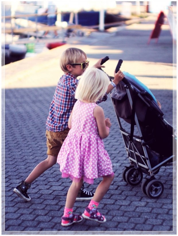 Kävimme perjantai-iltana pitsoilla rannassa -ja taas fiilistelmässä venekylän (=vierasvenesatama) elämää. Kummasti sielu lepää (ja askel hidastuu) mereen heijastuvassa ilta-auringossa. Ja hyvien ystävien seurassa. Kun voi olla ihan oma itsensä, hiljaa silloin kun ei ole sanottavaa ja totinen silloin kun ei naurata. Ja silti kaikki on tosi hyvin. Omppu ja Ainokin olivat aika innoissaan saadessaan työnnellä jotain pikkuista vaunuissa. 😉 Tällaisina kesäiltoina koko tunnelma jotenkin painautuu rauhallisesti päälle kuin lämmin peitto eikä vaan voi tehdä muuta kuin rentoutua. Ja hymyillä. Ja ajatella hyviä ajatuksia. Ihan pakosti. Niitä vaan tulee.