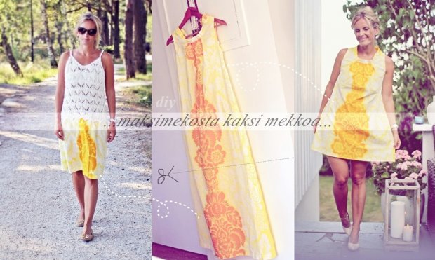 Sellasta voi siis tehdä, jos kaapista löytyy käyttämättömiä maksimekkoja! Saa ehkä kaksi uutta mekkoa. 😉 Ananaksen aurinkoista viikonloppua! 😛