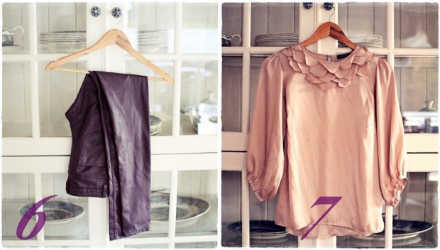 6) Vilan violetit nahkajäljitelmähousut. Tykkään kovasi, mutta nyt on nahkahousuja sen verran, että yksistä on pakko luopua. 😉 Koko S.