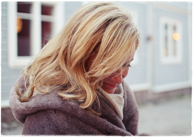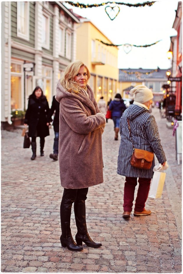 Mulla on kuvissa muuten siskon anopin (!) talvitakki. Se, kuinka takki on päätynyt siskolle on kummallinen tarina (säästän toiseen kertaan), mutta niin se nyt vaan päätyi mun käyttööni. Ihku nallekarhutakki. 🙂 Ja siskon poromekko on Supertrashin.
