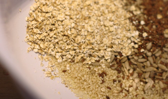 eli knekkebrød eli näkkileipä Tästä terveellisemmäksi ei leipä yksinkertaisesti voi mennä. Eikä juuri maukkaammaksi. 3 suurta munaa 10 rkl sesamin siemeniä 10 rkl auringonkukan siemeniä 3 rkl pellavan siemeniä 6 rkl kaurahiutaleita 2 tl merisuolaa (tai maun mukaan vähemmän..) 4 rkl jauhettua mantelia (jauha mantelit/mantelihiutaleet melkein jauhoksi, sellaiseksi ”hiekaksi”) Sekoita ainekset kulhossa pehmeäksi taikinaksi.Jatka lukemista ”Knekkis”